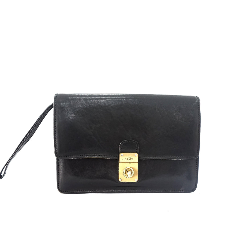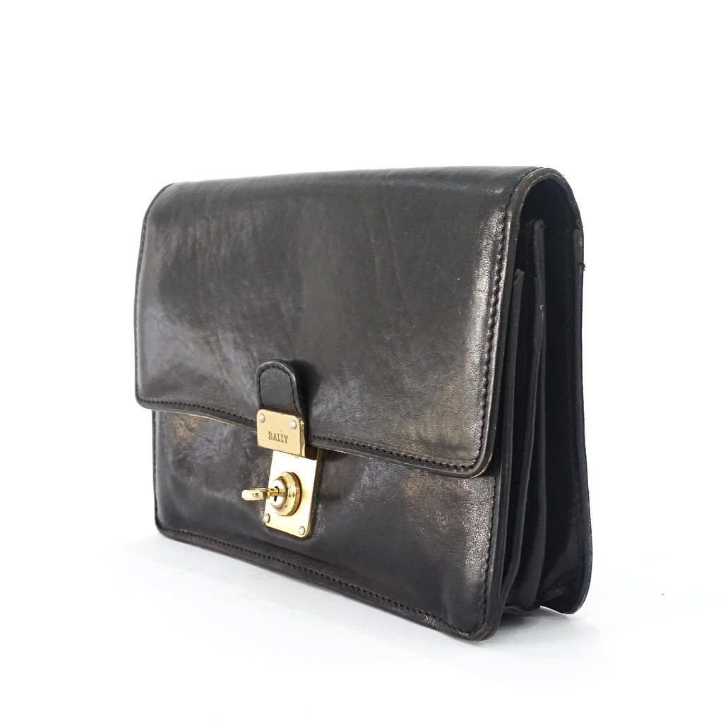Bally Mens Black Leather Mens Purse Gold Hardware 3 compartments
