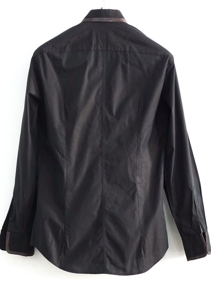 Black Long Sleeves Shirt with Silk Ribbon on Collar